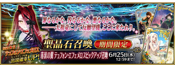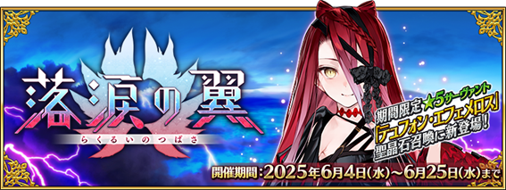 ■期間限定「落涙の翼 テュフォン・エフェメロスピックアップ召喚」:https://news.fate-go.jp/2025/rakuruinotsubasa_pu/