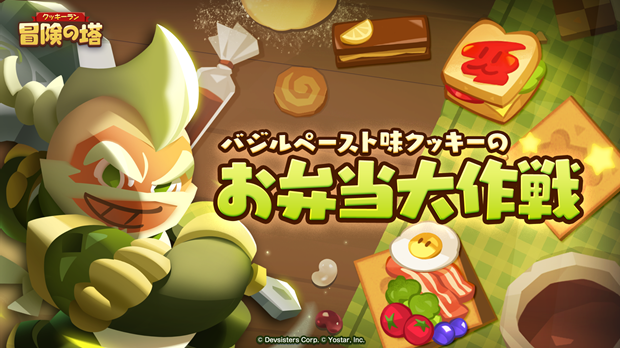 新イベント「バジルペースト味クッキーのお弁当大作戦」を開催中です。イベント内ミッションで獲得できる「ハンマー」を使ってタイルを割り、隠された食べ物を発見しよう。隠された食べ物を全て見つけ出すとお弁当が完成し、完成回数に応じて「ピックアップクッキーガチャチケット」などの報酬を獲得することができる。