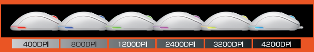 本製品は、DPI変更時、各DPIの決まった色で約5秒間点灯。DPIボタンを約3秒間長押しすることで、LEDのON/OFFを切り替え可能。