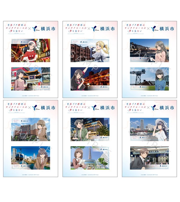 オリジナルステッカー全6種類をコンプリートいただいた方に、『「青春ブタ野郎はサンタクロースの夢を見ない」×横浜市』コラボキャンペーン描きおろしイラストのA4クリアファイルをプレゼント! ぜひこの貴重な機会にゲットして下さい!
