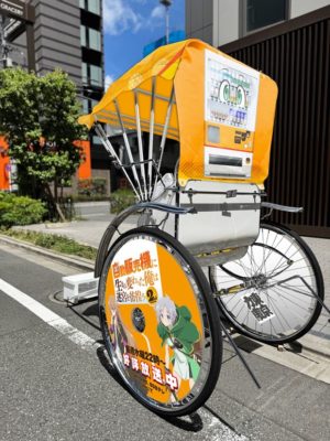 株式会社ライズアップ(東京都台東区)が運営する浅草を拠点とする観光人力車「東京力車」とのコラボが決定! 俺自販機仕様にラッピングされた人力車が浅草を駆け抜ける! ラッピングされた人力車は、通常の人力車と同じ料金で乗車可能。。さらに、雷門通り店と六区店では数量限定でハッコンうちわも配布! 無くなり次第配布終了となりますので、予めご了承ください。