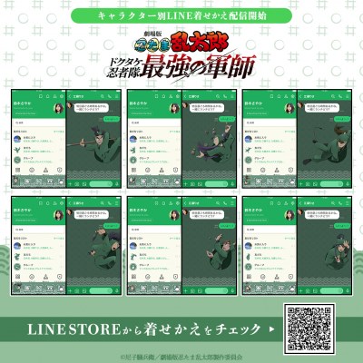 キャラクター別ver.のLINE着せかえ第1弾は「猪名寺乱太郎」、「摂津のきり丸」、「福富しんべヱ」、「土井半助」、「山田伝蔵」、「山田利吉」の5点が2025年7月10日(木)に配信開始され、2025年7月17日(木)には、キャラクター別ver.のLINE着せかえ第2弾、五年生の「久々知兵助」、「尾浜勘右衛門」、「不破雷蔵」、「鉢屋三郎」、「竹谷八左ヱ門」が配信開始した。2025年7月24日より配信開始するキャラクター別ver.のLINE着せかえ第3弾は、六年生の「潮江文次郎」、「立花仙蔵」、「中在家長次」、「七松小平太」、「善法寺伊作」、「食満留三郎」の6点。今後も「劇場版 忍たま乱太郎 ドクタケ忍者隊最強の軍師」の他のキャラクター別ver.のLINE着せかえが続々登場予定ですのでお楽しみに!