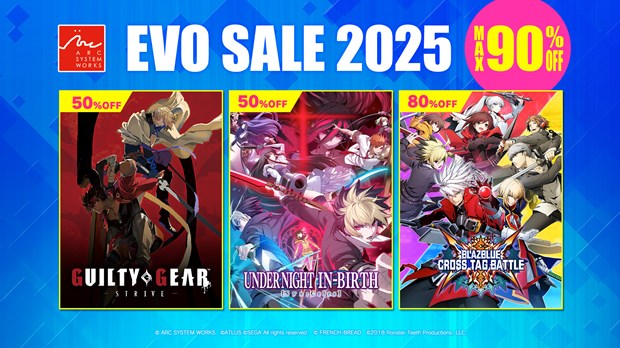 アークシステムワークス株式会社は本日より、2025年8月13日(水)まで、PlayStation Store、ニンテンドーeショップ、Steamページにてアークシステムワークス「EVO SALE」を開催中。