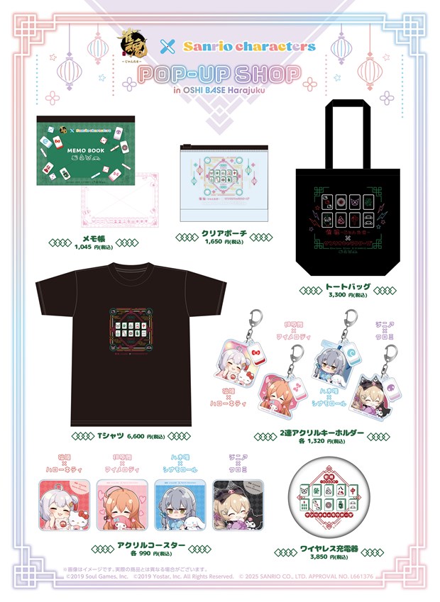 株式会社 Yostar は、当社が運営している対戦型麻雀ゲーム『雀魂-じゃんたま-』において、『サンリオキャラクターズ』とコラボしたポップアップショップ「雀魂-じゃんたま-×サンリオキャラクターズPOP-UP SHOP in OSHI BASE Harajuku」を、2025年8月2日(土)〜2025年8月31日(日)の期間、「OSHI BASE Harajuku」(東急プラザ原宿「ハラカド」内)にて、開催することを発表した。