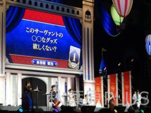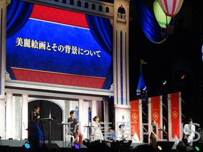 また、★1~3のサーヴァントでの語りには鶴岡さんが会場い向かって語りだす場面も。さすが鶴岡さん! ★3以下で使えるサーヴァントは補助として防御を削ったりいろいろ使いどころがあるとの意見で一致した。牛若丸やロビンフットにお世話になっているという話も。レベルを上げればしっかり使えるのがFGOの良さ、とは赤羽根さん。ほしいグッズの話になると、大久保さんから等身大フィギィアというワードが飛び出る! 100万以下なら購入するとガチ勢の気合十分。次のお題は「美麗絵画とその背景について」。3枚を選んで発表するというものだ。