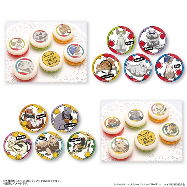 劇中の登場する猫たちがプリントされたキャラクターケーキおよびマカロンの発売が決定。可愛い猫たちをぜひお手元でお楽しみください。