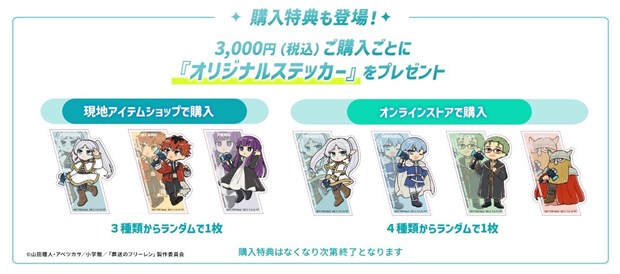 会場およびオンラインストアで税込3000円以上ご購入いただくと、購入特典としてオリジナルちびキャラステッカーをプレゼント。特典の絵柄は、会場とオンラインストアでそれぞれ異なる。
