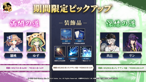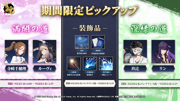合わせて『銀蛇迎儀』『満開の道』『深緑の道』では以下の期間限定装飾品が登場。