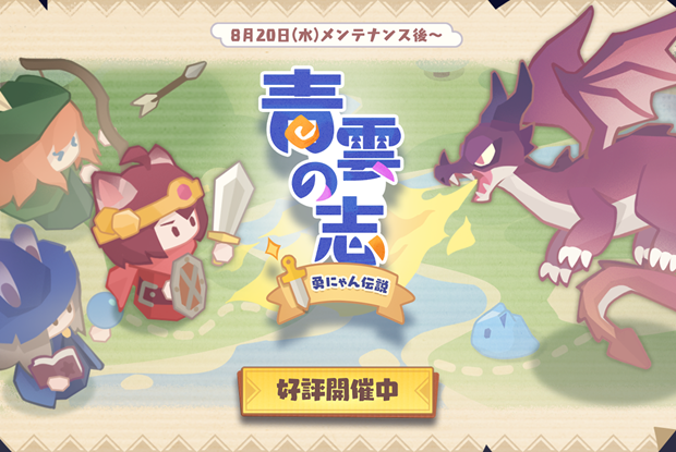 期間限定イベントであった「青雲の志」がさらにパワーアップして、新たに「青雲の志:勇にゃん伝説」として長期開催する。イベントクエストを達成することで賢者の福袋などの豪華報酬が入手できる。
