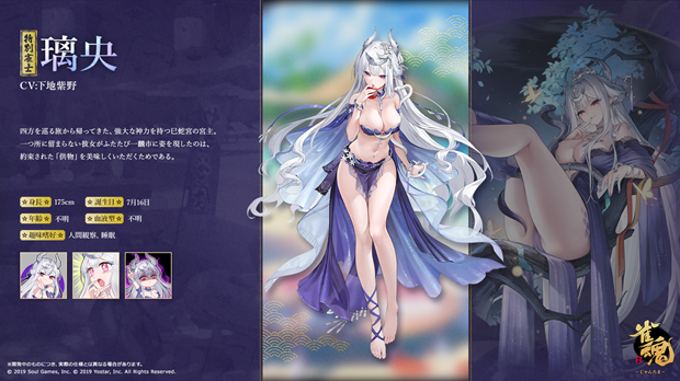 2025年8月20日(水)メンテナンス後より、新たに特別雀士「璃央」(CV: 下地 紫野)が登場!「璃央」は四方を巡る旅から帰ってきた、強大な神力を持つ巳蛇宮の宮主。一つ所に留まらない彼女がふたたび一飜市に姿を現したのは、約束された「供物」を美味しくいただくため。「璃央」は絆レベルが上がるにつれて、特別装飾品の「立直演出:曲径通幽」「和了演出:蛇伏漸近」「鱗光輝くフレーム」を入手できる他、契約後はうごく着せ替え衣装も入手できる。この機会にぜひ迎えよう!