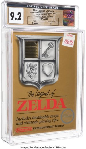 - NES版『The Legend of Zelda』 CGC 9.2 A 未開封、ファーストプロダクション(任天堂、1987年)