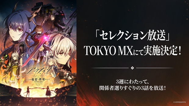 株式会社 Yostar は、当社が運営するアプリゲーム『アークナイツ – 明日方舟 -』(以下、アークナイツ)を原作とした『アークナイツ』のTVアニメ『アークナイツ【焔燼曙明/RISE FROM EMBER】』において、TOKYO MXにて2025年9月12日(金)、9月19日(金)、9月26日(金)にセレクション放送の実施を決定した。