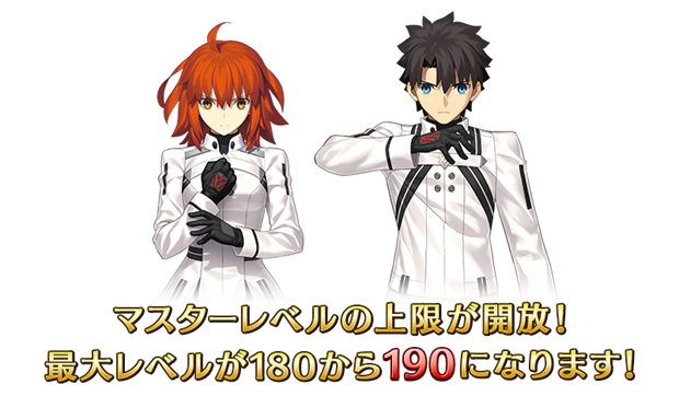 「冠位戴冠戦:Rider」開幕により「冠位戴冠戦」も残すところ3クラスとなるため、今後のさらなる戦いに備えてマスターレベルの上限を開放。「奏章Ⅳ」クリアの条件を満たすことで、マスターレベルを最大190まで上げられるようになった。
