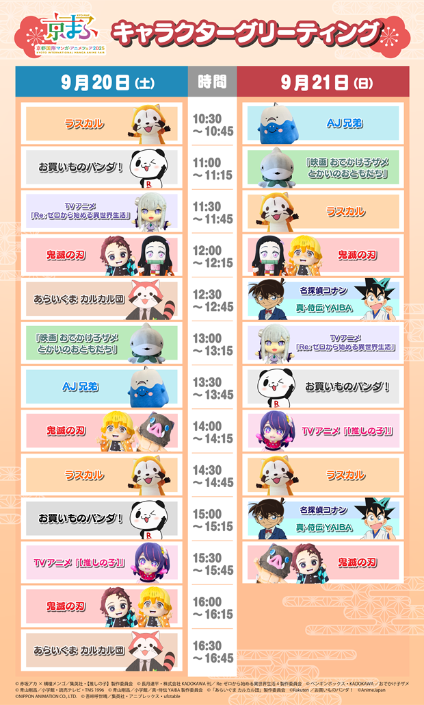 ラスカルをはじめ、「鬼滅の刃」やTVアニメ「【推しの子】」などの人気キャラクターが、会場内に登場!キャラクターとのグリーティングや、写真撮影が楽しめる。
