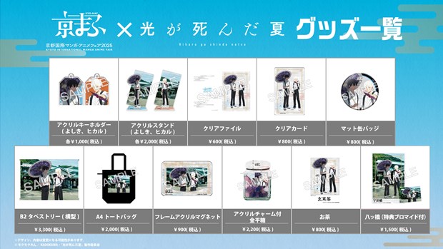 京まふショップ(みやこめっせB1F)では“京まふコラボビジュアル”の6作品、アニメ『怪獣8号』、アニメ「青春ブタ野郎はサンタクロースの夢を見ない」、TVアニメ『ダンダダン』、TVアニメ『桃源暗鬼』、TVアニメ「光が死んだ夏」、TVアニメ『リコリス・リコイル』のオリジナルグッズを販売! また、メインビジュアル(京都市広報キャラクター「京乃つかさ」、京都市交通局地下鉄・市バス応援キャラクター「太秦萌」を起用)を使用した京まふ2025オリジナルグッズや、ほかにも人気マンガ・アニメ作品の商品約500アイテムを販売する。商品ラインナップについては、公式サイトを確認ください。