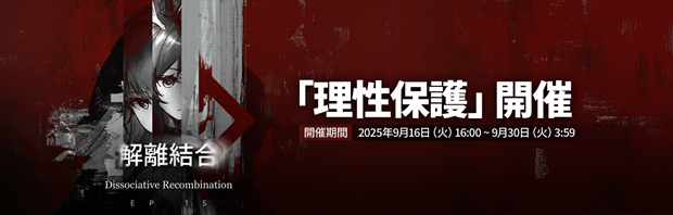 期間中、EPISODE15「解離結合」のクリアしていないステージで作戦失敗した場合、消費した理性が全返却される。