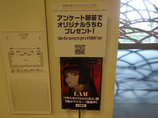 うちわも準備されているが、暑さが例年に比べ比較にならないくらい涼しい1日目。今までの酷暑が嘘のようなイベント日和となっている。さて、1階を見ていくと見慣れたブースが多数。京まふ定番になりつつある。