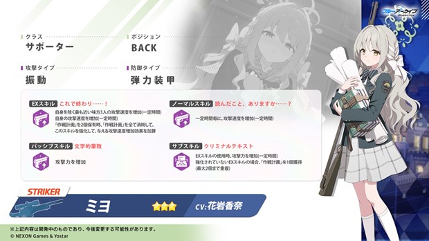 市来さんが実際にゲームプレイを行う。コユキ、ナグサ、フユ、ミヨ、それぞれのキャラの動きが可愛い。スペシャルではリツ、サツキの動作も確認できる。このキャラクターたちで出撃したプレイが流れた。是非配信アーカイブで確認だ!
