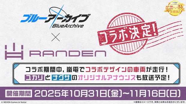 嵐電でコラボデザインの電車が走るとの事。オリジナルアナウンスも流れるという事なので、後日公開となるイベント特設サイトで確認しよう。