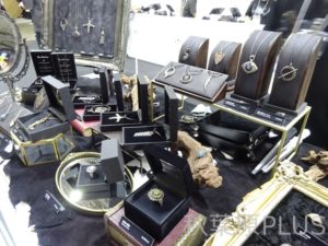 こちらはTORCHTORCHさんのブースのプレステパーカー。ミンミコさん、このショップでかなりご購入された模様。琴線に触れるグッズが多いようだ。