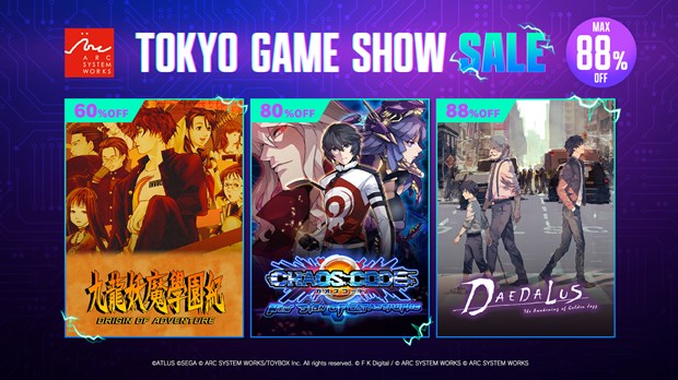 アークシステムワークス株式会社は2025年10月8日(水)まで、PlayStation Store、ニンテンドーeショップ、Microsoft Store、Steamにて、アークシステムワークス「Tokyo Game Show Sale」を開催中。