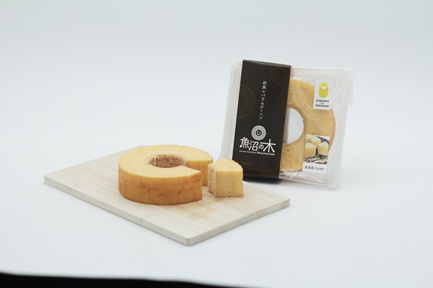 魚沼産コシヒカリ米粉100%で作られた、しっとりとした食感に、優しい甘みが特徴のバウムクーヘン。