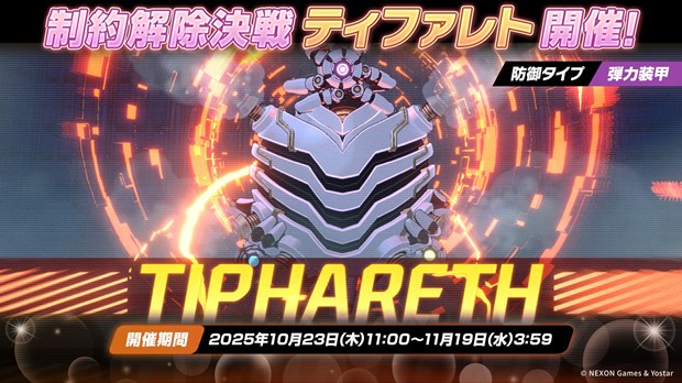 2025年10月23日(木)11:00より、制約解除決戦「ティファレト」を開催する。ぜひ挑戦してみてください。