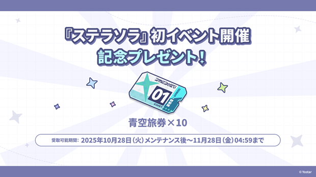 ■「青空旅券×10」配布期間:2025年10月28日(火)メンテナンス後~2025年11月28日(金)04:59まで