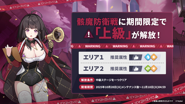 2025年10月28日(火)メンテナンス後より、骸魔防衛戦に期間限定で「上級」が解放される。高難易度のチャレンジコンテンツとなるので、慎重に準備して、無理のない範囲で挑戦しよう。
