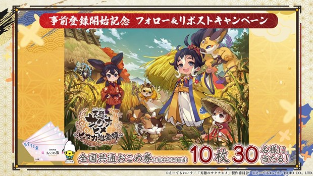 公式Xにて「天穂のサクナヒメ~ヒヌカ巡霊譚~」事前登録開始記念キャンペーンを開催中! 公式Xをフォロー&該当のポストをリポストすることで、抽選で30名様に「全国共通おこめ券10枚(4,400円分)」が当たる! キャンペーンの開催期間は2025年11月7日(金)13:00から2025年11月13日(木)23:59までとなっているので、ぜひ奮ってご参加ください。