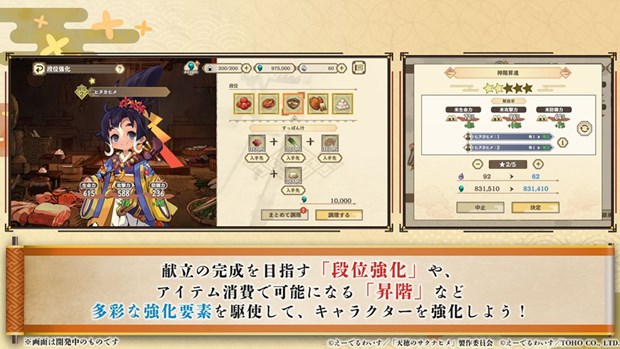 クエストクリアで手に入る「食材」を使い、「献立」を完成させることでキャラクターの能力をアップさせることができる「段位強化」や、特定のアイテムを使用することでキャラクターのアビリティを強化できる「昇階」など、様々な方法でキャラクターをパワーアップさせることができます!
