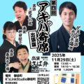 2025年12月のあきぷら寄席は、入船亭扇太さん、扇兆さんのダブル入船亭で開催。いつもの扇太さん、前回も登壇した扇兆さん、と入船亭の若手の話でお楽しみください。気軽に500円で楽しむ落語です。落語を聞いたことが無い人へ向けて開催中ですので、近くの落語を聞いたことが無い人を誘って、まずは落語デビューしませんか?