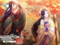 赤く色づいた美しい紅葉(もみじ)を見上げ、優しく笑みを浮かべる玲琳と、風に髪を靡かせながら紅葉に目を留める慧月が描かれている。