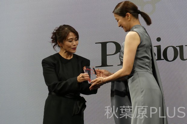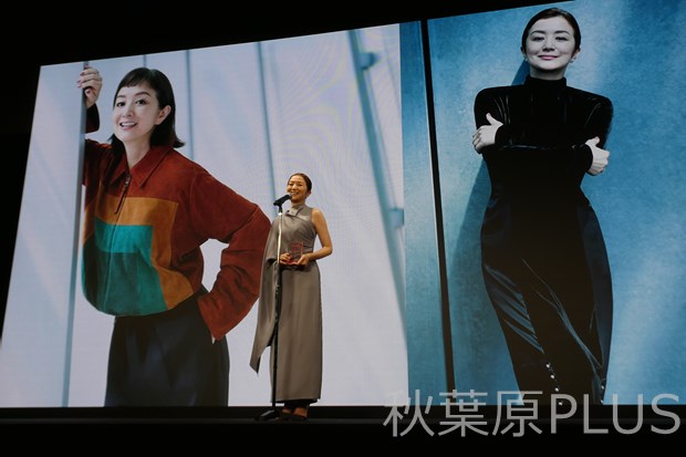 舞台ではプレゼンターの能聡子さんより鈴木京香さんへ盾の授与が行われた。能さんより時の人賞に選ばれた理由を語っていたが、アートという唯一無二の時を超えた存在、そして映像作品では短い人生の中に様々な輝きを確かな演技力で演じている姿が「時」に相応しいという事で「時の人」の賞を贈れたことに非常にうれしく思う、と語った。