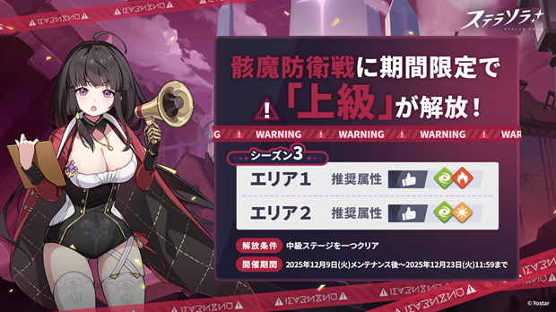 2025年12月9日(火)メンテナンス後より、骸魔防衛戦にて、上級ステージ/シーズン3を開催する。