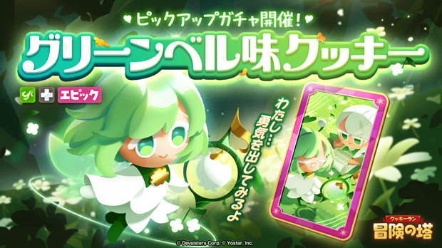 株式会社Yostar(代表取締役 李 衡達 / 所在地:東京都千代田区)は、デヴシスターズ(株)(代表 チョ・ギルヒョン / 所在地:韓国ソウル市)が開発する『クッキーラン:冒険の塔』において、2025年12月11日(木)14:00より、ピックアップガチャにて、「グリーンベル味クッキー」が登場し、ピックアップ中であることを発表した。
