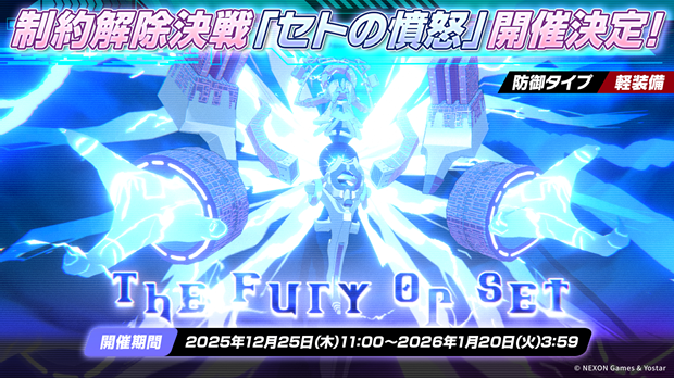 2025年12月25日(木) 11:00より、制約解除決戦「セトの憤怒」を開催する。