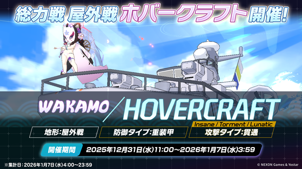 2025年12月31日(水) 11:00より、総力戦「ホバークラフト」を開催する。