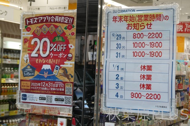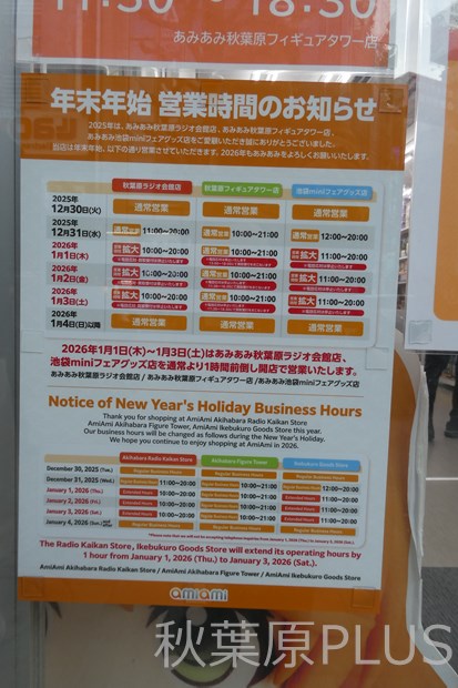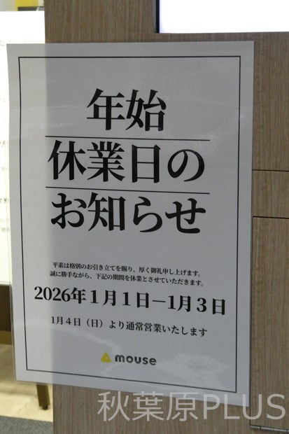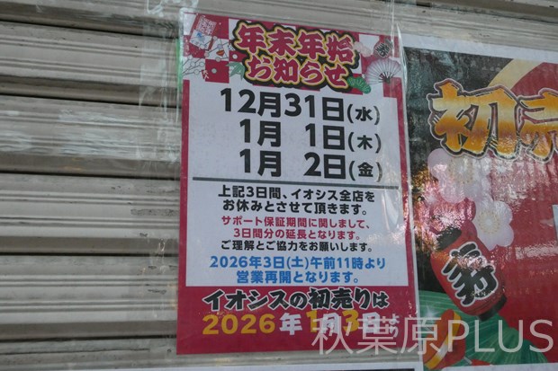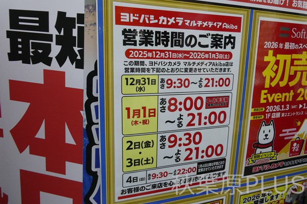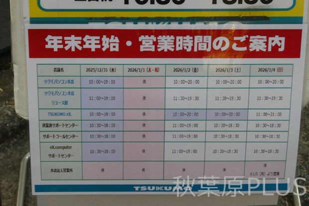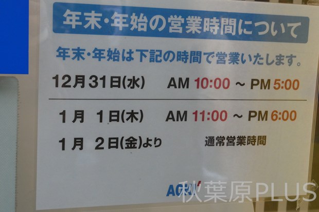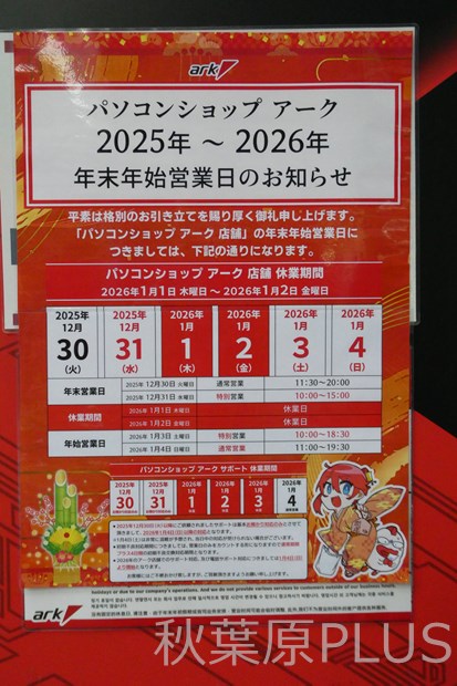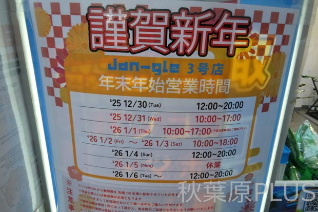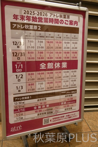 これで2025年の秋葉原の年末年始の営業時間等のまとめは終わりとなる。もうちょっとで2026年が始まるこのタイミングでの公開となるが、何かの参考になれば幸いだ。それではよいお年を!