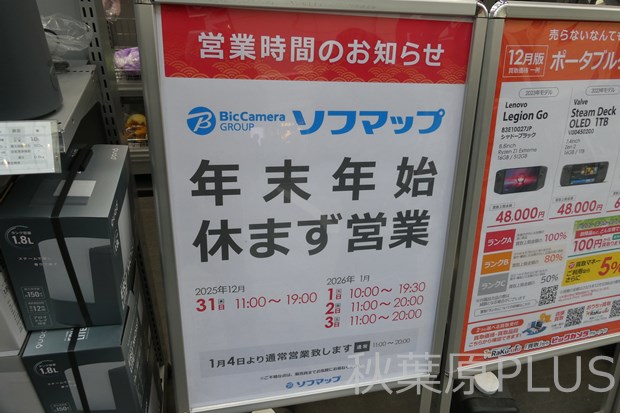 中央通り末広町駅よりのソフマップも年末年始は通常営業。