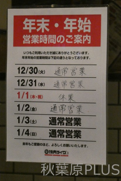 年始の焼肉ライクは2日からの営業となっているのは末広町駅に近い店舗だ。