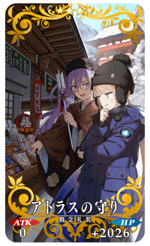 公式X(Twitter)にて、2026年1月1日(木)・2日(金)・3日(土)の各日0時に投稿される「2026年お正月キャンペーン開催!」ポストのリポスト数が、下記の期間内で合計10万リポストを達成すると、ゲームをプレイしているすべてのマスター(プレイヤー)に概念礼装「★4(SR)アトラスの守り」と「2,026万QP」をプレゼント。