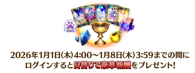 本キャンペーンの開催を記念して、7日間限定のニューイヤーログインボーナスを実施する。2026年1月7日(水)4:00からのログインボーナスでは、「聖杯」1個をプレゼント。
