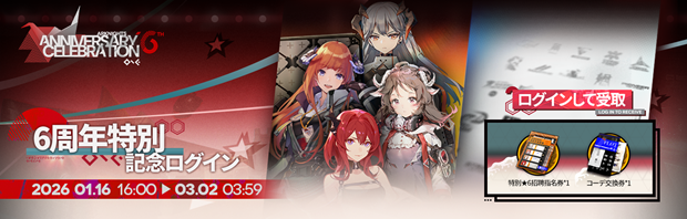 6周年を記念して、対象★5オペレーターの中から1名を加入させることができる「★5招聘指名券」を配布する。