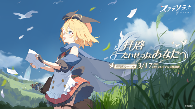 ステラソラ2026年3月21日『ステラソラ』期間限定イベント【拝啓、たいせつなあなたへ】開催!★5巡遊者「トーナ」先行実装のピックアップガチャなども実施!