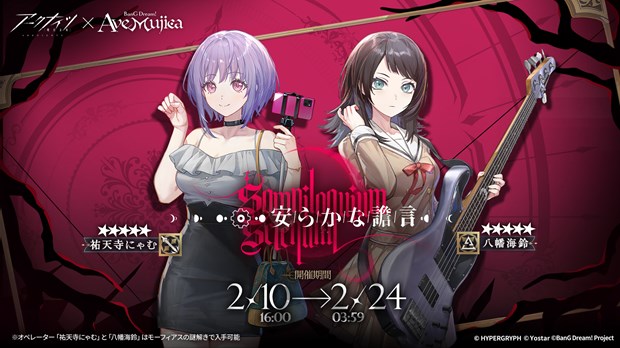 株式会社 Yostar は、当社が運営するアプリゲーム『アークナイツ – 明日方舟 -』(以下、アークナイツ)において、2026年2月10日(火)16:00より開催される『BanG Dream! Ave Mujica』コラボイベントについてお知らせした。