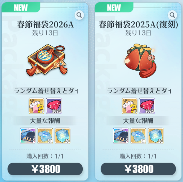 ■上記福袋販売期間:2026年2月12日(木)メンテナンス後~3月4日(水)23:59まで