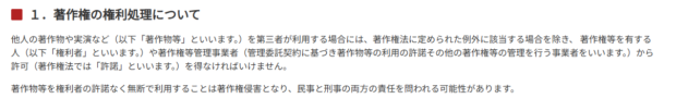 上記の文章は「分野横断権利情報検索システム」に記載されている一文だが、『著作物等を権利者の許諾なく無断で利用することは著作権侵害となり、民事と刑事の両方の責任を問われる可能性があります。』とあり、事実ではあるが親告罪である説明が抜けており権利侵害即罰則と読める。親告罪の説明が不足しており恣意的に上記文章が記載されているのではないかと疑いたくなる。