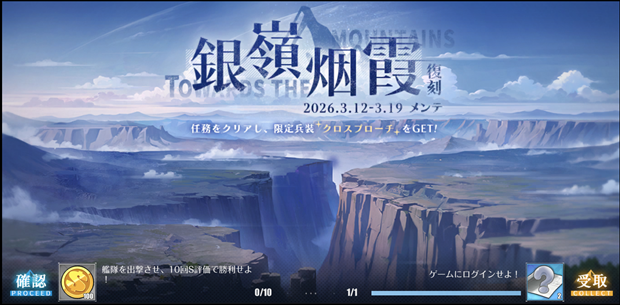 2026年3月12日(木)メンテナンス後より、前哨戦イベント「作戦準備 南大洋」復刻ライト版を開催する。いくつかのクエストをクリアし「特別任務Pt」を集めることで、限定チャットフレームを獲得することができる。