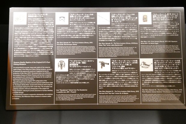 こんな感じで狭いエリアでの展示ではあるが見どころがギュッと詰まった次に見る機会が無いかもしれないこの展示、見逃さずに見に行こう! ミレニアム・ファルコン号以外にも今回は6つの展示が行われている。どれもオークションで高値落札が想定されている品々ばかりだ!